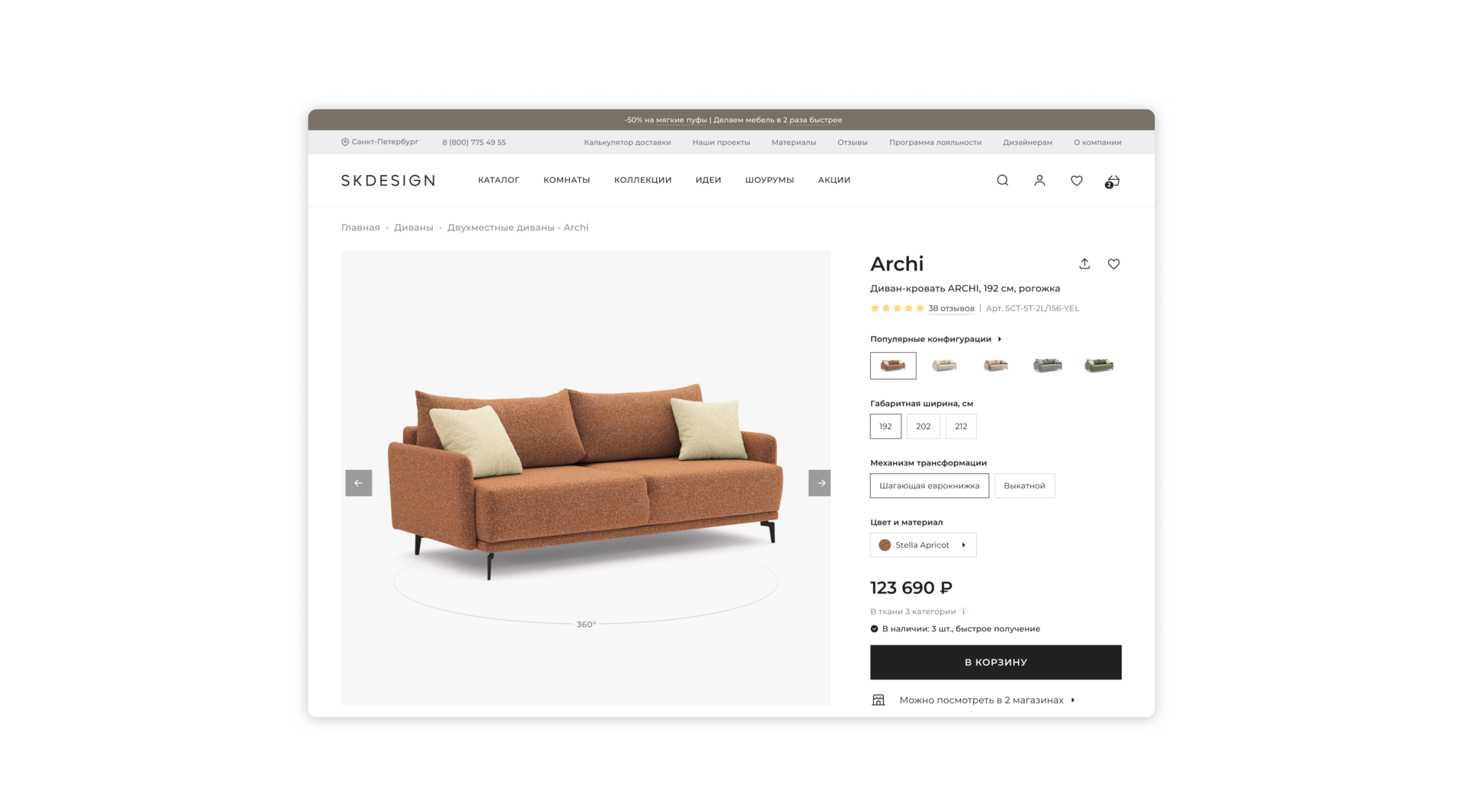 Теперь в каталоге можно быстро и удобно посмотреть наличие товаров в ближайшем магазине, отфильтровать по виду спорта, технологиям, скорости доставки, стоимости, и др. параметрам. Пользователю больше не нужно проваливаться в карточку товара, чтобы посмотреть расцветки, доступные размеры и добавить товар в корзину.