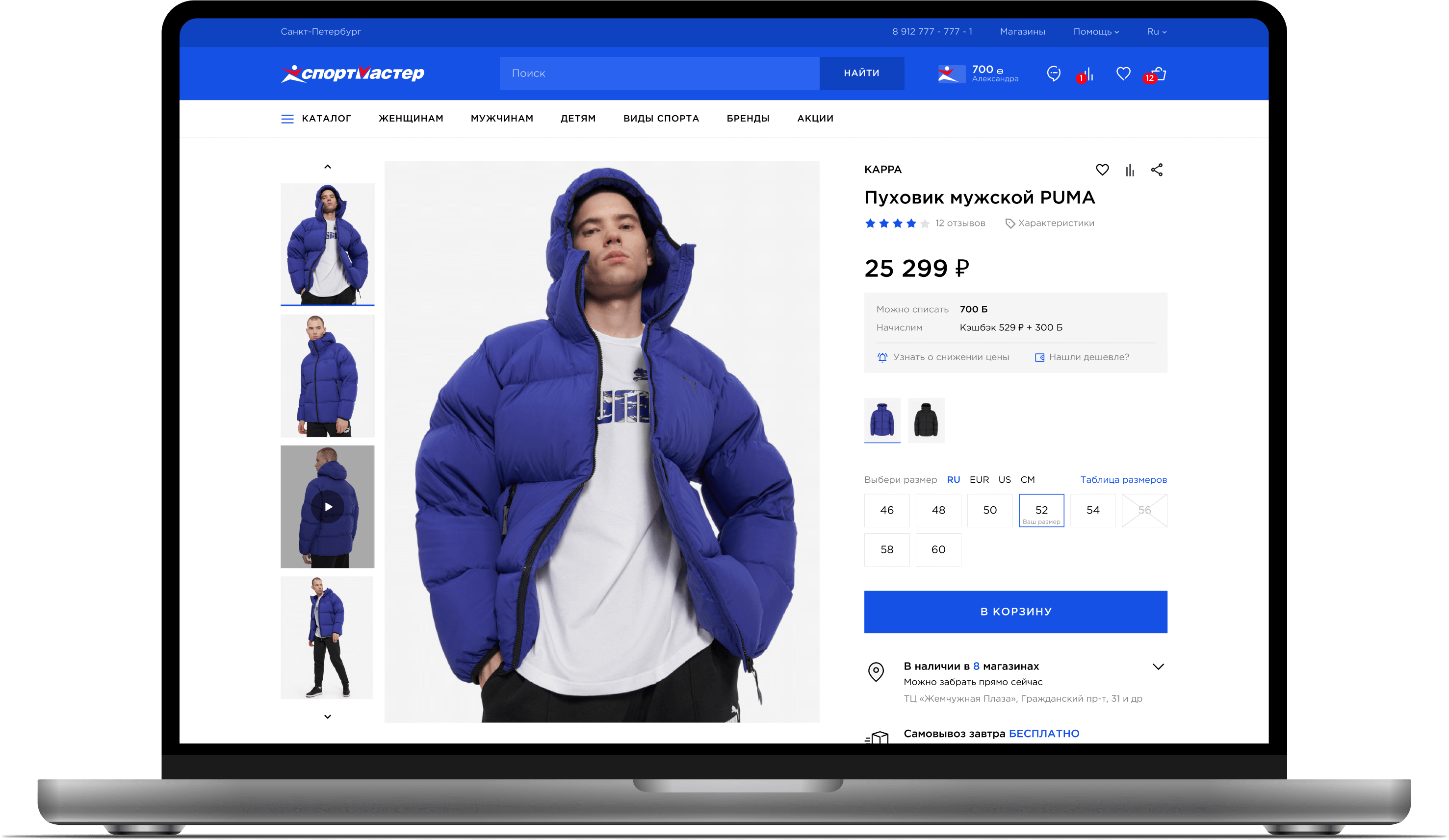 Теперь в каталоге можно быстро и удобно посмотреть наличие товаров в ближайшем магазине, отфильтровать по виду спорта, технологиям, скорости доставки, стоимости, и др. параметрам.